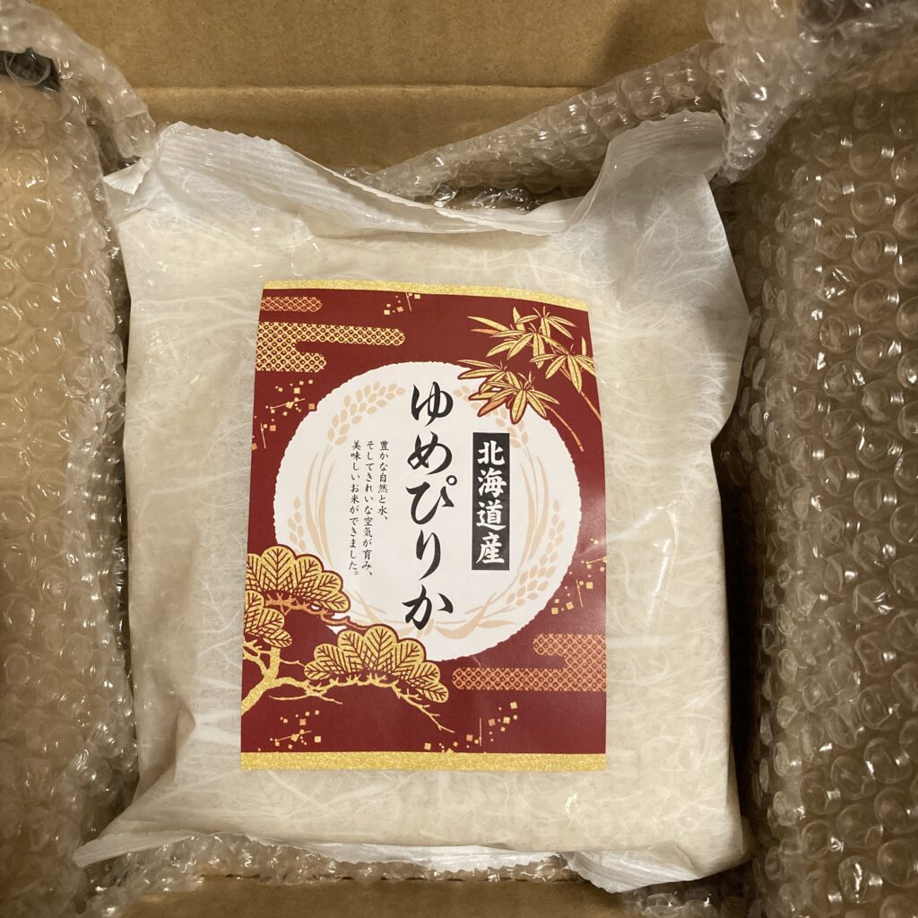 ヤマナカの株主優待のお米は毎年品種などが変わるのですが、2025年は北海道産ゆめぴりか800gでした。